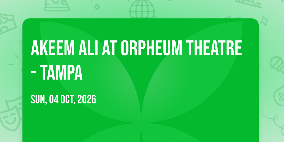 🎉 Welcome to Akeem Ali at Orpheum Theatre - Tampa, where dreams come alive and possibilities are endless! 🏛️ Join us at Orpheum Theatre - Tampa in the heart of Tampa, FL for an event that defies expectations. 📅 On October 4th, 2026 at 07:00 PM, be part of something truly extraordinary as we bring together innovation, entertainment, and pure magic. ✨ Every aspect has been carefully designed to ensure an unforgettable experience for all our guests. Whether you're seeking adventure, inspiration, or simply a break from the ordinary, this event promises to deliver beyond your wildest dreams. 🎊 Prepare for a journey into the extraordinary!