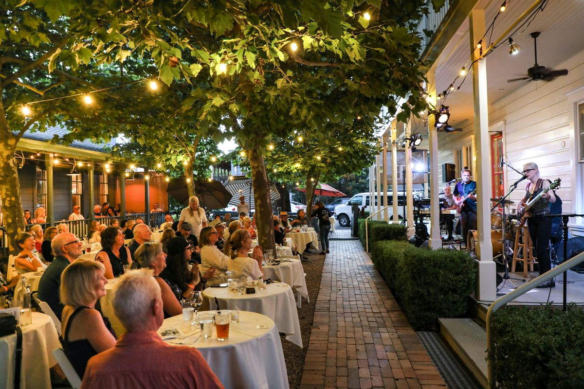 Night two of the 19th annual Blue Wing Blues Festival held at sunset in the garden between the Tallman Hotel and Blue Wing restaurant. Beginning at 6:15 each evening, guests are treated to two outstanding blues bands plus a delicious barbeque dinner, all for a price of $80 + tax per person.