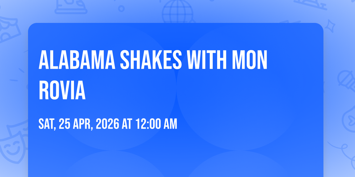 📍 Location: 33.8766, -84.396✨ Embark on an extraordinary journey at Alabama Shakes with Mon Rovia, where every moment promises to be unforgettable! 🌟 Imagine of transforming Synovus Bank Amphitheatre at Chastain Park in the heart of Atlanta, GA into a realm of endless possibilities. 📅 Join us on April 25th, 2026 at 12:00 AM for an experience that will challenge your imagination and exceed your expectations. 🎯 This carefully curated event combines the finest elements of entertainment, innovation, and community spirit. Whether you're an adventure seeker, culture enthusiast, or someone looking for unique experiences, this event offers something special for everyone. 🎊 Don't miss this chance to be part of something extraordinary!
