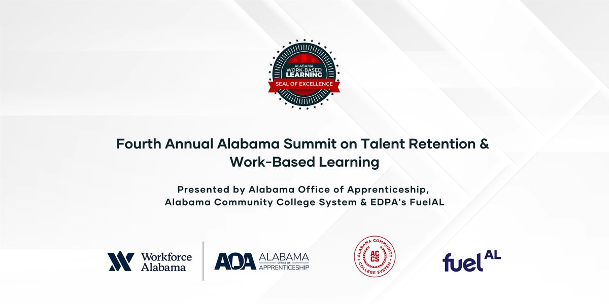 The Alabama Office of Apprenticeship, Alabama Community College System and FuelAL, a program of the Economic Development Partnership of Alabama (EDPA), are proud to announce partnership in hosting the 2026 Alabama Summit on Talent Retention and Work-Based Learning. The Summit will take place in Birmingham, Alabama, at the Sheraton Birmingham Hotel, April 14-16, 2026.