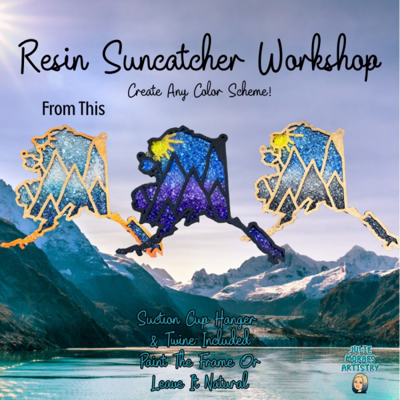 Create your own beautiful sun catcher on a laser cut wood design and clear acrylic back with paint (or leave natural), resin, various crushed glass, mini beads, crushed shells and even glitter!