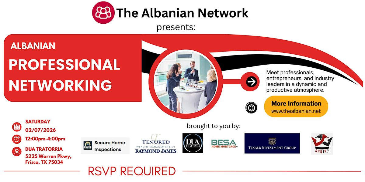 The Albanian Network is hosting a special Networking Event for Albanian professionals and business owners — an opportunity to meet fellow entrepreneurs, share ideas, and build valuable relationships within our growing community.