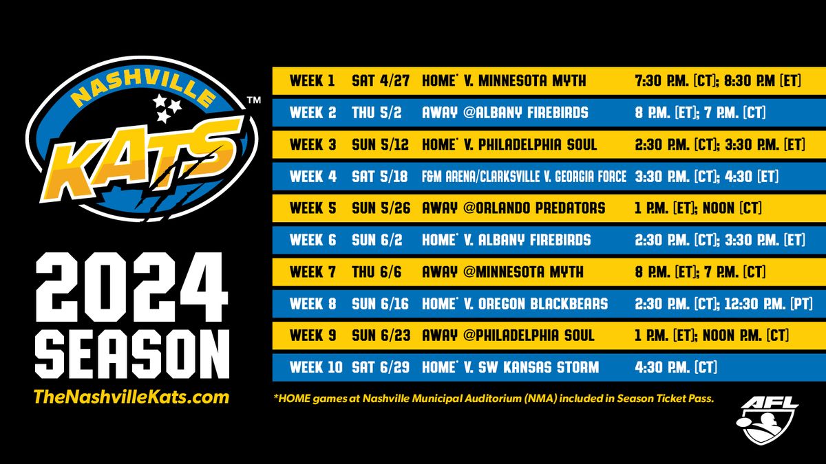 🎉 Welcome to Albany Firebirds at Nashville Kats at F&M Bank Arena, where dreams come alive and possibilities are endless! 🏛️ Join us at F&M Bank Arena in the heart of Clarksville, TN for an event that defies expectations. 📅 On June 20th, 2026 at 04:00 PM, be part of something truly extraordinary as we bring together innovation, entertainment, and pure magic. ✨ Every aspect has been carefully designed to ensure an unforgettable experience for all our guests. Whether you're seeking adventure, inspiration, or simply a break from the ordinary, this event promises to deliver beyond your wildest dreams. 🎊 Prepare for a journey into the extraordinary!