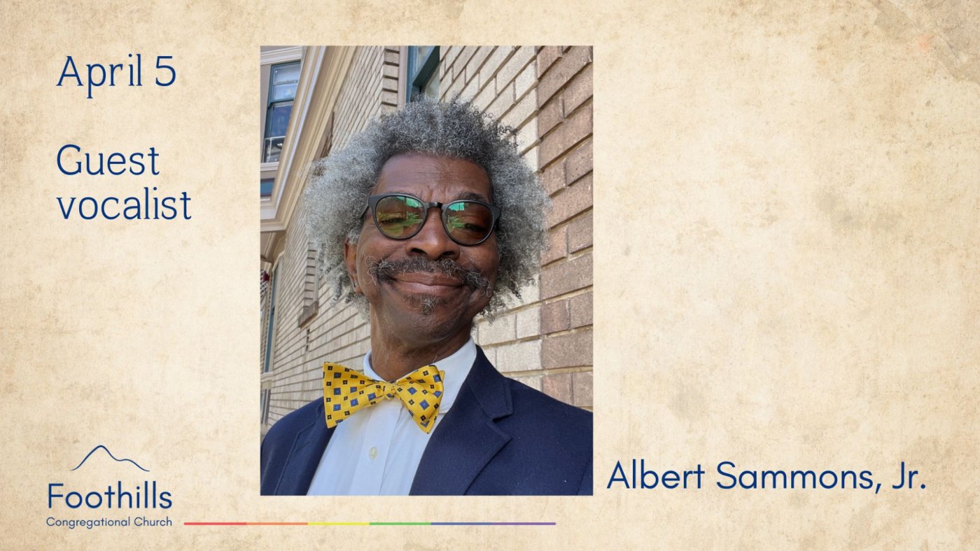 Albert Sammons, Jr. returns as the guest vocalist for our Easter Sunday worship service. Albert has been singing for over 60 years. He is a bass-baritone with a love for singing Negro/Black spirituals. Albert says, “I’m honored to be asked to sing at Foothills. I’m a chorister at heart. Singing is my joy.”