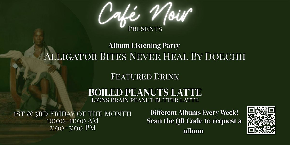 Join us at Café Noir for an immersive listening experience featuring Alligator Bites Never Heal by Doechii. Sit back, sip something good, and experience the album from start to finish in a relaxed café setting.