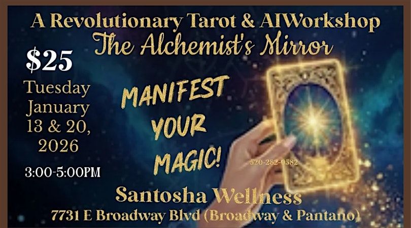 "The Alchemist's Mirror" A Study in Alchemy and the 22 Major Arcana of the Traditional Rider Waite Tarot Card Deck. A Metaphysical event series featuring tarot card readings, oracle card readings, intuitive readings, including energy healings. In this series where ancient wisdom and divination meets modern technology, we will explore the hidden clues and secrets of the Tarot Oracle and other exciting topics! Come along with us and Manifest Your Magic!