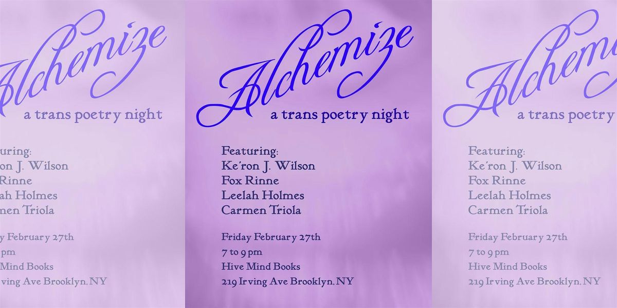 Alchemize, a trans poetry reading series, returns to Hive Mind Books in February!
