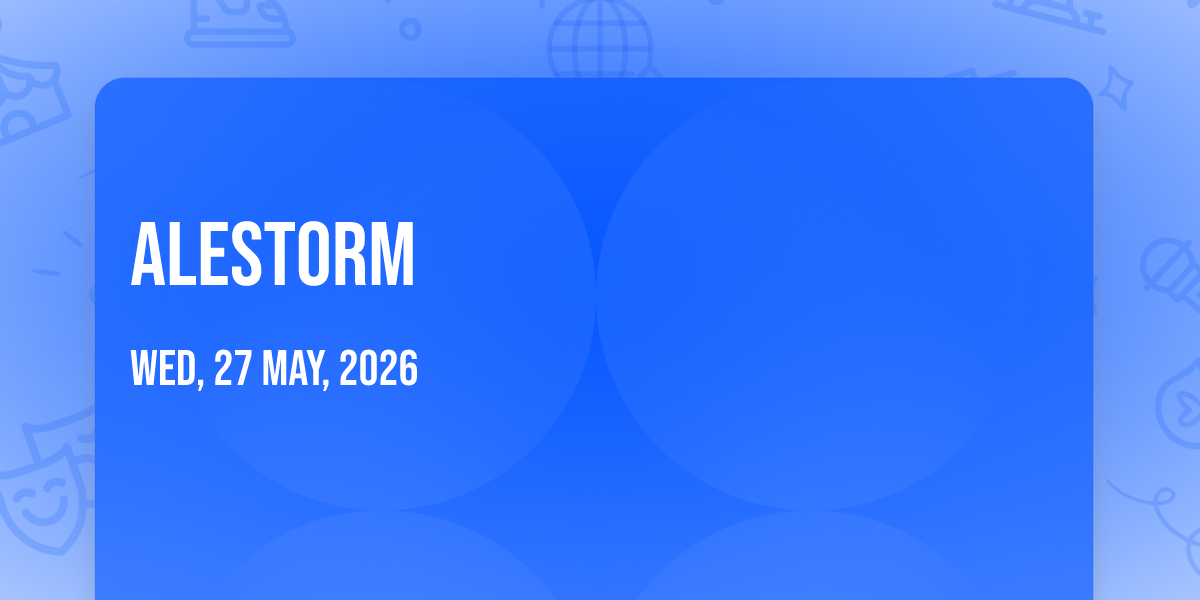 📍 Location: 49.8958, -97.1436🌟 Step into a world of wonder at Alestorm, where extraordinary moments await! 🏛️ Located at Burton Cummings Theatre in dynamic Winnipeg, MB, this event will become the talk of the town. 📅 Join us on May 27th, 2026 at 12:30 AM for a celebration that defies the ordinary. ✨ This curated experience brings together the best of entertainment, culture, and community spirit. Every detail has been thoughtfully planned to ensure an unforgettable experience for all our guests. 🎯 Take advantage of this opportunity to be part of something special. 🎊 Early registration is recommended as space is limited!