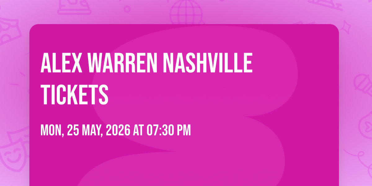Alex Warren at Bridgestone Arena🎉 Prepare to be amazed at Alex Warren Nashville Tickets, the most anticipated gathering of the season! 🌟 Set against the stunning backdrop of Bridgestone Arena in vibrant Nashville, TN, this event promises to redefine your expectations. 📅 Mark your calendars for May 25th, 2026 at 07:30 PM and get ready to immerse yourself in an atmosphere of wonder and excitement. ✨ From the moment you arrive, you'll be transported into a world where memories are made and stories come alive. They have crafted an experience that perfectly harmonizes entertainment, innovation, and community spirit. 🎟️ Tickets are available at 56.10 EUR. 🌈 Join us as we create moments that will be discussed for years!