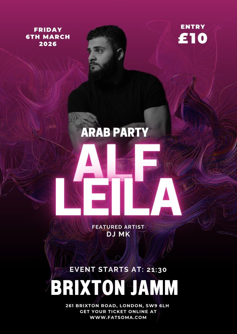 Step into Alf Leila ✨—a night of pure Arab magic. Hypnotic beats, Middle Eastern rhythms, electric energy, and nonstop dancing till late. One night. One vibe. Don’t miss it.Disclaimer: