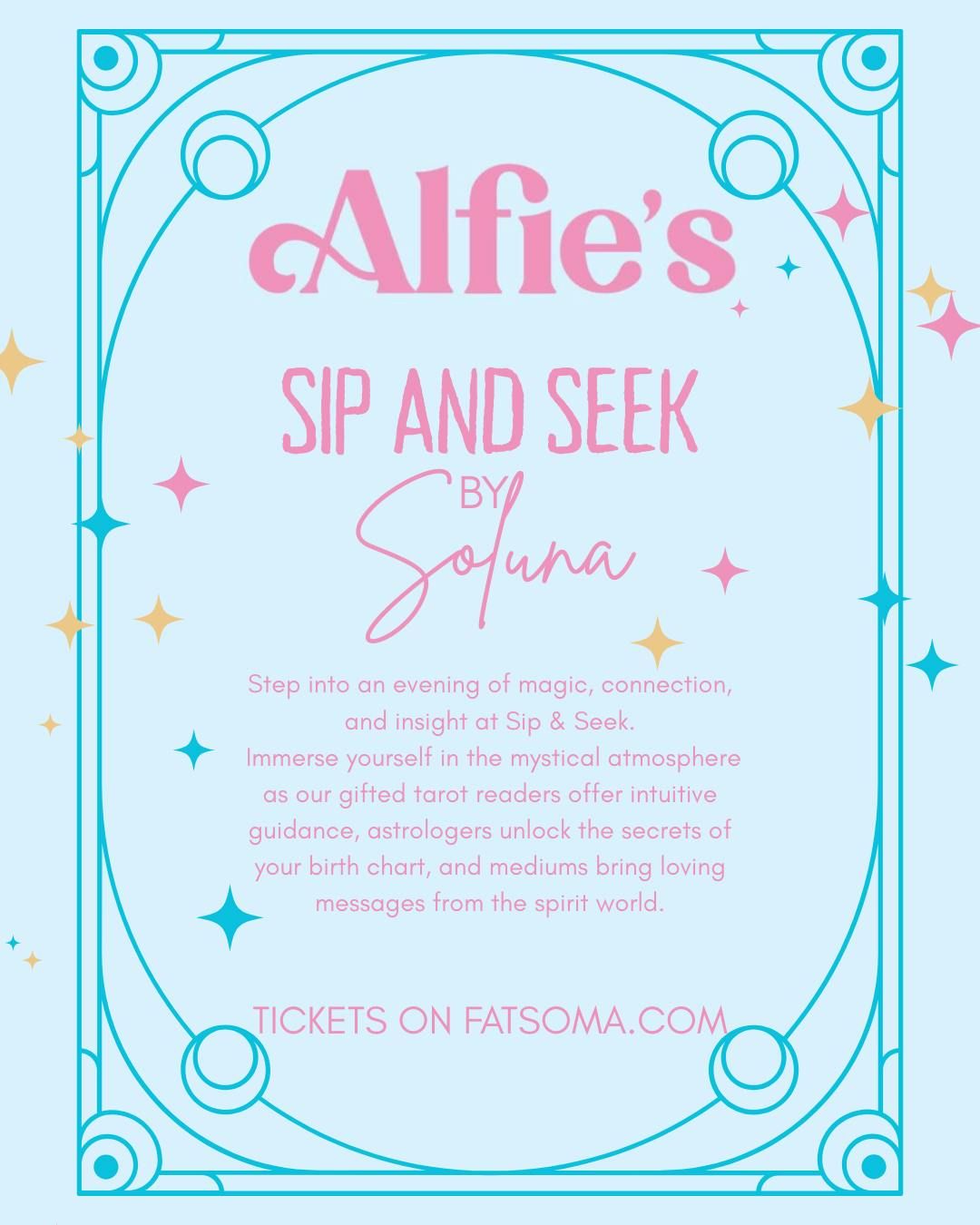 Venue: Alfie’sFood & drinks will be available to purchase separately from the bar.Whether you’re seeking guidance, curious about the mystical, or just looking for a fun and meaningful night out with friends, Sip & Seek is the perfect evening to connect with like-minded souls.