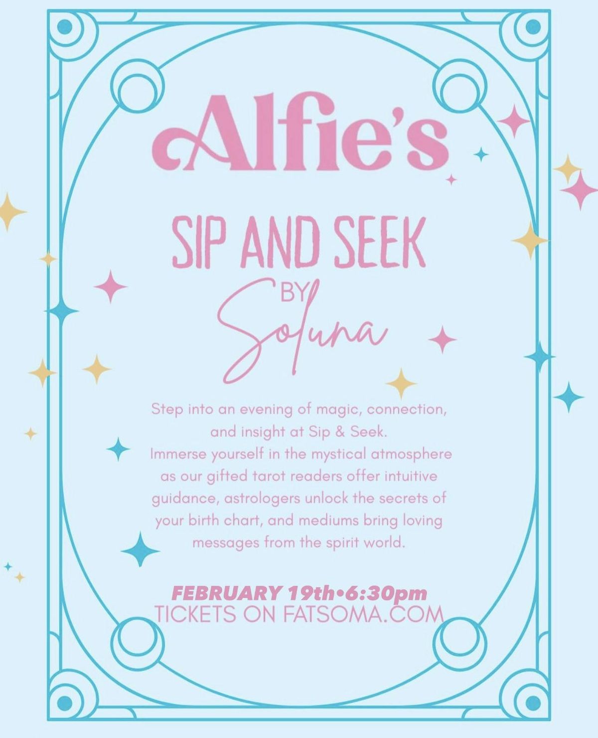 Venue: Alfie’sFood & drinks will be available to purchase separately from the bar.Whether you’re seeking guidance, curious about the mystical, or just looking for a fun and meaningful night out with friends, Sip & Seek is the perfect evening to connect with like-minded souls.