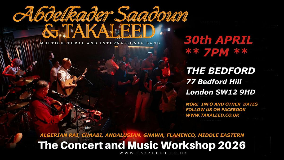 Get ready for an unforgettable night of authentic North African vibes! Join us in person to experience the soulful sounds of Algeria with the amazing Saadoun & Takaleed. Whether you're a fan of traditional tunes or just love great music, this concert is for you. Bring your friends, feel the rhythm, and dive into a spectacular cultural journey!