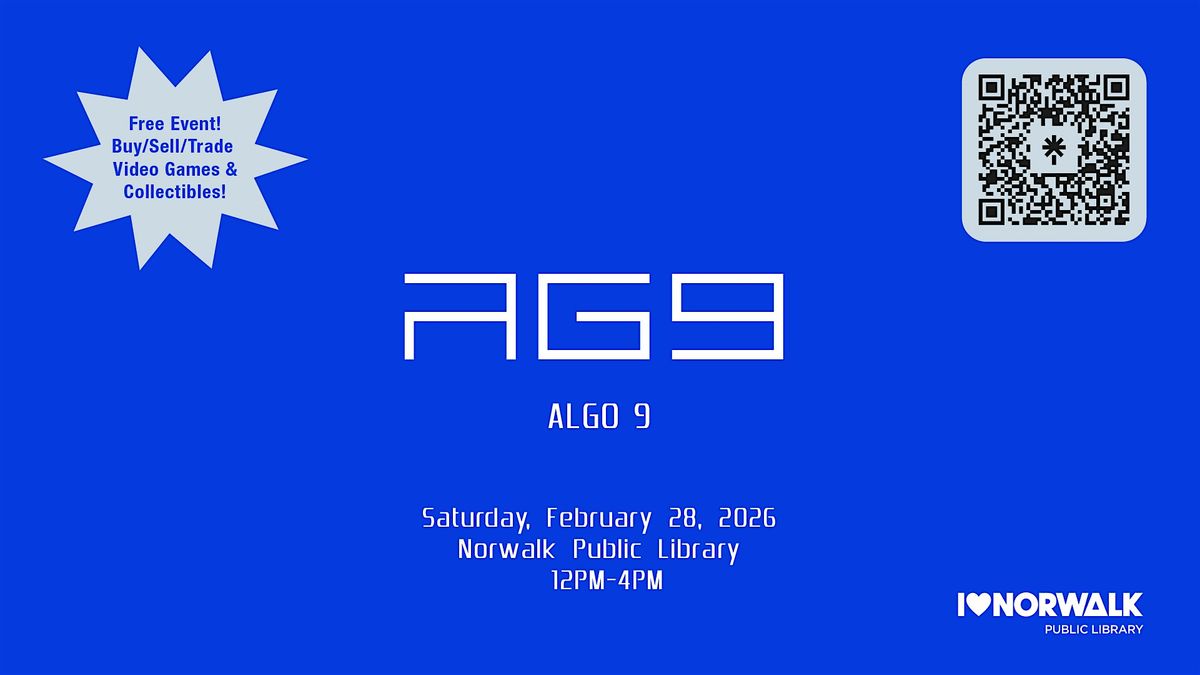 Fairfield County's premiere video game swap meet returns! ALGO 9 takes place on Saturday, February 28, 2026 over at the Norwalk Public Library, located at 1 Belden Avenue in Norwalk, CT.