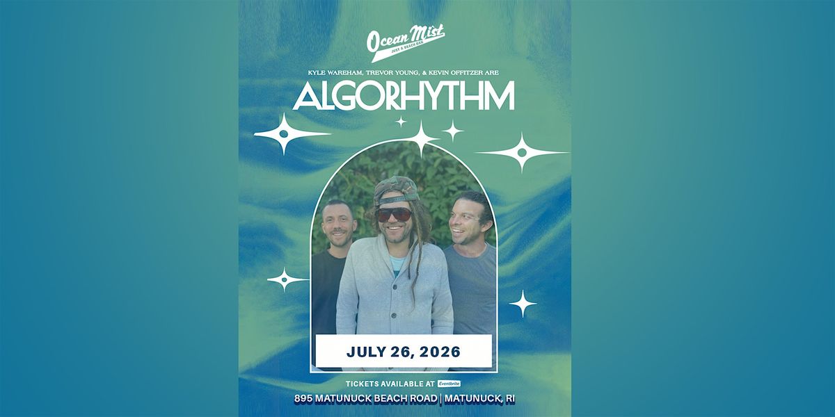 Formed in the winter of 2023, Algorhythm is an electrifying new group focused on promoting conscious, forward-thinking ideas through their art. The group consists of Trevor Young, Kyle Wareham, Kevin Offitzer, and Brandon Pescrille. Since forming, the band has developed a dedicated following through word of mouth, the members’ reputations, and their infectious live performances. Algorhythm’s music showcases versatility and creativity, blending elements of reggae, rock, electronic, and pop. The band has already played multiple international shows and released several singles that have charted on both Billboard and iTunes. Their debut album, Make It Last, was released on April 19, 2024, and hit number one on the Billboard Reggae Charts. Following their debut, the group released the EP Island, featuring the hit single “Beach Cruiser”, which received extensive airplay on Sirius XM and college radio stations across the country. Their second full-length album, Illusion, was released on November 14, 2025, showcasing the depth of the group’s creative vision and passion for songwriting. The song “Time and Space” from the album was picked up by college radio and several national stations, further expanding their reach. Algorhythm continues to captivate audiences worldwide with their dynamic performances and innovative sound, promising even more excitement on the horizon.