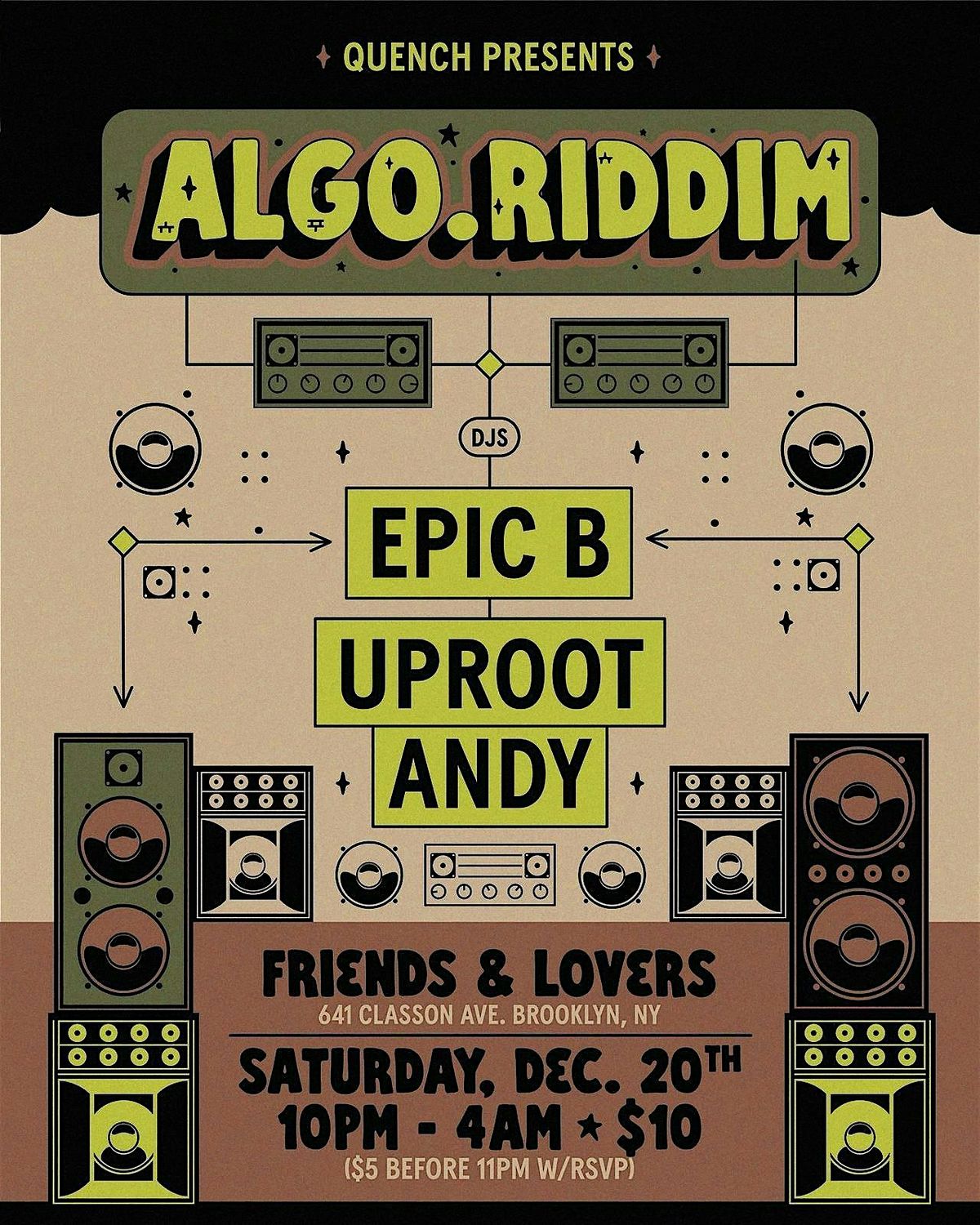 Sat. Dec. 20th bring all the irie vibes at Algo.Riddim powered by in Crown Heights, BK. Come bussa whine and ride for the people with and two certified NY staples on the Latin and Dancehall scenes. They’ll be bringing all the smoke with b2b sets serving up EXTRA large portions of West Indian, Afro-Latin, and African flavors from start to finish.
