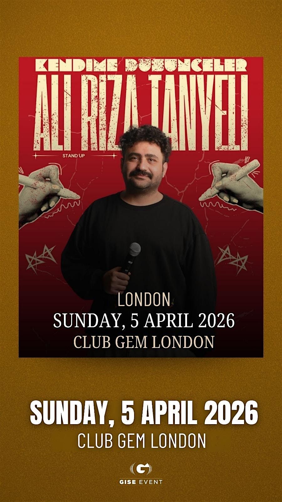 Ali Rıza TANYELI Londra stand up show'unu kacirmayin. Performans oncesi restaurant bolumunde oturabilir, ucretli yemek ve iceceklerden siparis verebilirsiniz.