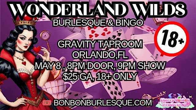 Welcome to the Alice in Wonderland Burlesque and Bingo event at Gravity Taproom! Get ready for a night of whimsical fun on May 8, 2026 at 9:00 PM (Eastern Time). Join us for a unique twist on the classic tale, featuring captivating performances and exciting bingo games. Don't be late for this magical adventure down the rabbit hole! Get your tickets now and prepare for an unforgettable evening filled with surprises and entertainment.
