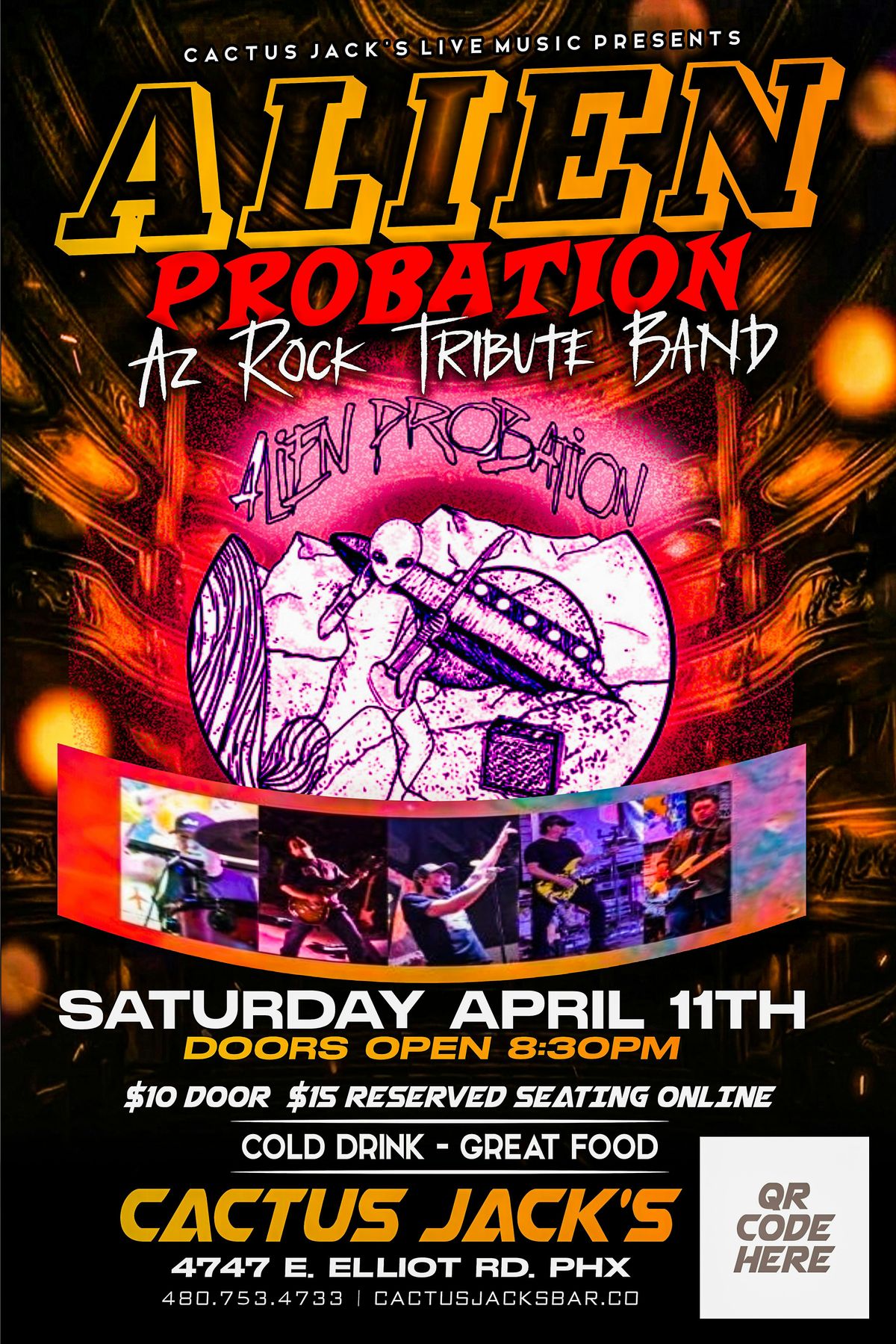 AZ! Alien Probation LIVE @ CactusJacks Sat 4/11! Show starts at 8:30p Tickets are $15 GET HERE EARLY! More info text 602-559-8393