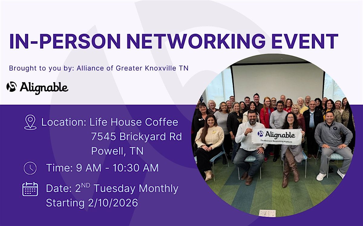 Network. Collaborate. Grow! Join the Alignable Alliance of Greater Knoxville for powerful in-person connections and local business growth.