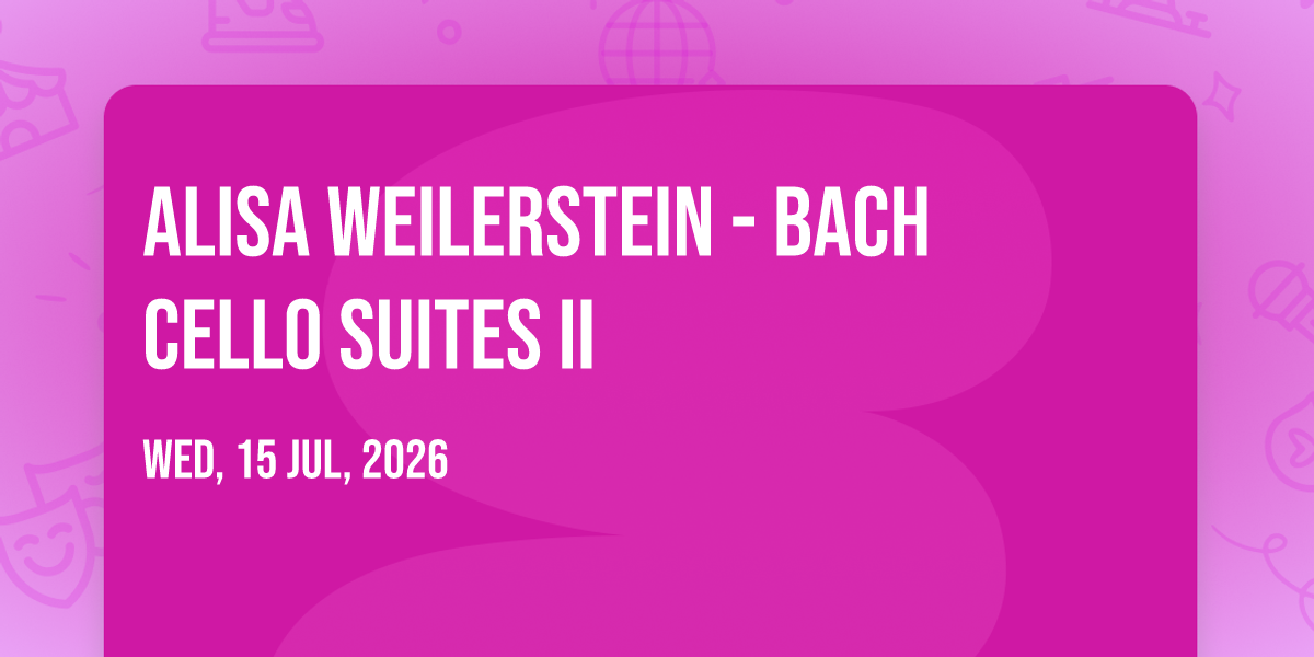 📍 Location: 39.6344, -106.408🎉 Prepare to be amazed at Alisa Weilerstein - Bach Cello Suites II, the most anticipated gathering of the season! 🌟 Set against the stunning backdrop of Donovan Pavilion in vibrant Vail, CO, this event promises to redefine your expectations. 📅 Mark your calendars for July 15th, 2026 at 01:00 AM and get ready to immerse yourself in an atmosphere of wonder and excitement. ✨ From the moment you arrive, you'll be transported into a world where memories are made and stories come alive. They have crafted an experience that perfectly harmonizes entertainment, innovation, and community spirit. 🌈 Join us as we create moments that will be discussed for years!