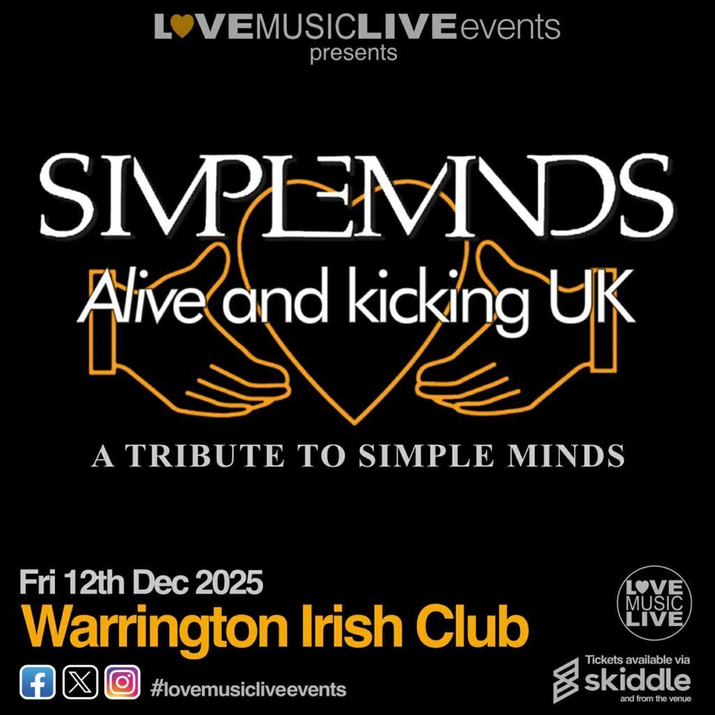 Alive & Kicking UK, the brilliant tribute to Scottish legends SIMPLE MINDS play Warrington Irish Club!!Music Genres : Rock, Covers Band/Tribute Act, 1980s, 1990s, Synth Pop
