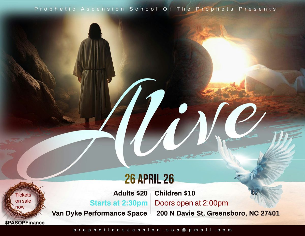 Join us in person for "ALIVE," an immersive worship encounter designed to inspire faith, stir the heart, and celebrate the risen Savior. This unforgettable production proclaims the timeless truth that because Christ lives, hope is alive for everyone.