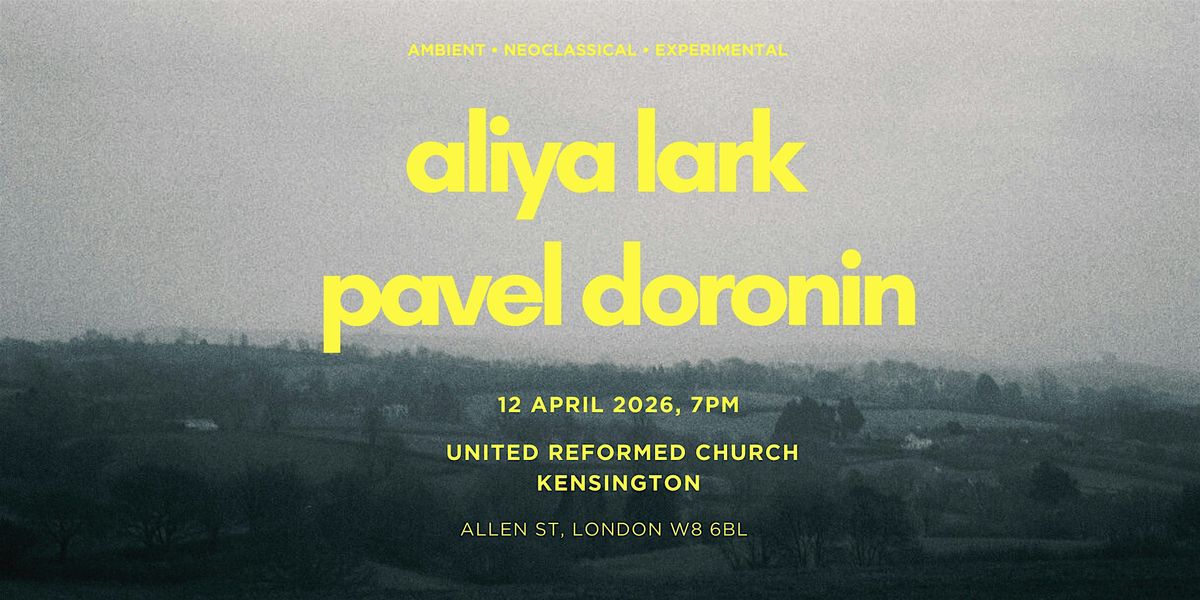 UK-based pianist and composer Aliya Lark and producer Pavel Doronin will perform their debut London shows at the Kensington United Reformed Church on the 12th of April 2026, presenting new works with audio-visual accompaniment. Aliya Lark performs material from her two EP's, "Sparks" and "Gravity of the Ocean" for the first time live; she will also present her new single "Fleeting Moments". Aliya's work has received support from BBC Radio 3, featured on AD21 Music's Piano Day compilation, and she scored the soundscape for the London theatre production, Diaries of War. Pavel Doronin will premiere his new EP, "Dill", which is built from field recordings and ambient textures inspired by the scents of his mother's cooking. This release marks his continued shift from earlier indie projects under various aliases towards more experimental territory under his own name, building on last year's collaborative ambient work with Aliya Lark. Both sets will draw on ambient, experimental and neoclassical artistic references, with visual projections from artists to be announced.