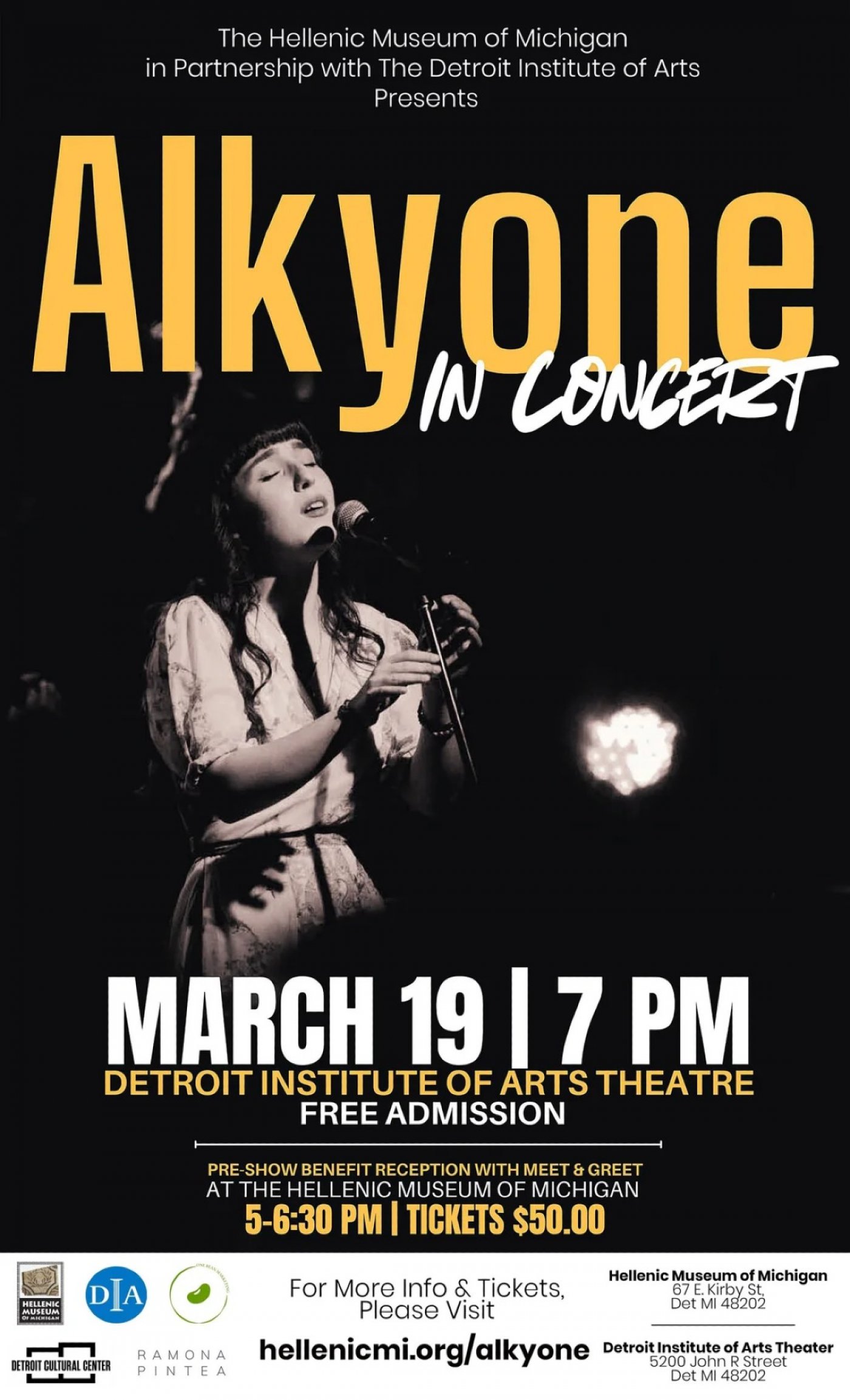 In Detroit for one night only! Exclusive performance to benefit Hellenic Museum of Michigan. International recording artist Alkyone is a singer-songwriter from the mountains of northern Greece whose music blends indie-pop cinematic textures, and folk influences, weaving folklore into an ethereal yet grounded sound.