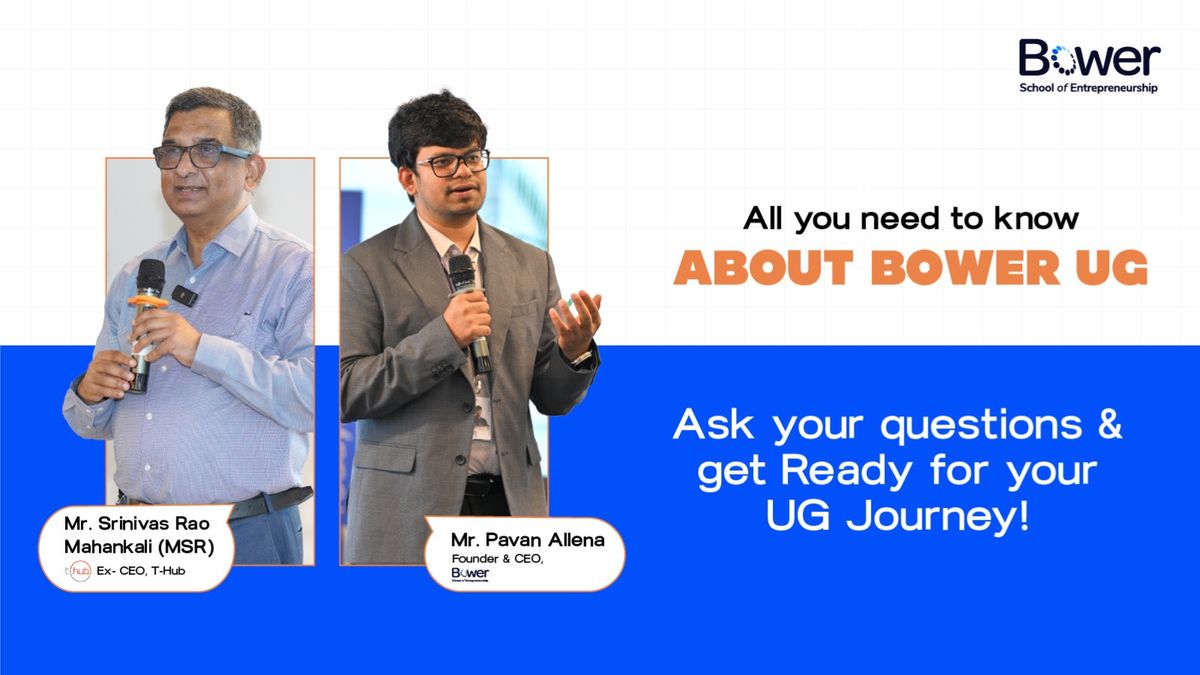 Building Early | An Exclusive Online Masterclass for Grade 11 & 12 StudentsThinking of entrepreneurship as an undergraduate path? Start here.Join an exclusive, clarity-driven online masterclass designed for Grade 11 & 12 students exploring undergraduate options in entrepreneurship.This session features a direct interaction withPavan Allena, Founder & CEO, Bower School of EntrepreneurshipandSrinivas Rao, Former CEO, T-HubWhat This Session Covers:How founders actually think and make decisionsHow startups are built from the ground upWhat it really means to start building earlyHow students can begin their entrepreneurship journey before college endsThis is not a motivational talk.It is a practical, insight-led interaction focused on helping students make informed undergraduate decisions.What You’ll Walk Away WithDirect access to the founder—ask questions about Bower UGClear understanding of the Bower UG 2026 intakePractical insights on starting your own business earlyHonest answers on UG choices, entrepreneurship, and next steps after school