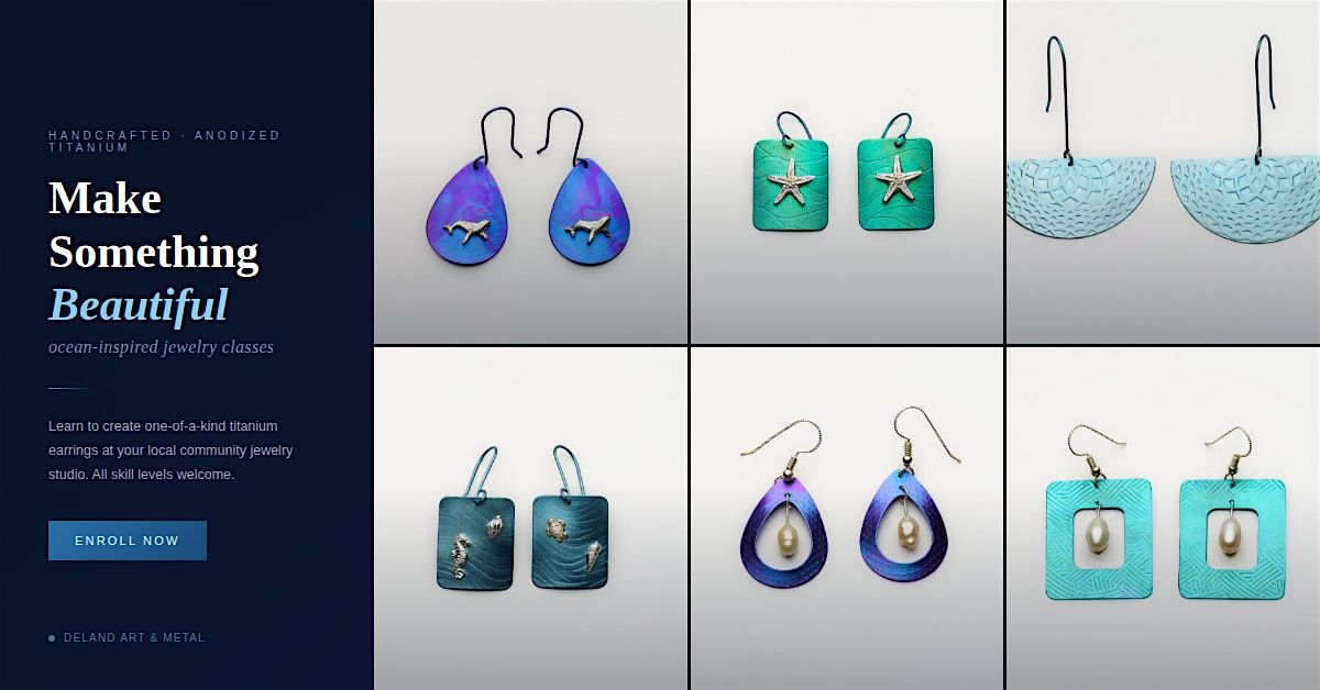 Discover the magic of titanium — lightweight, hypoallergenic, and bursting with color! In this 2-day beginner-friendly class with instructor Gail Thayer, you'll learn to texture, cut, roller print, anodize, engrave, and connect titanium into stunning earrings, pendants & more. No metalsmithing experience needed!