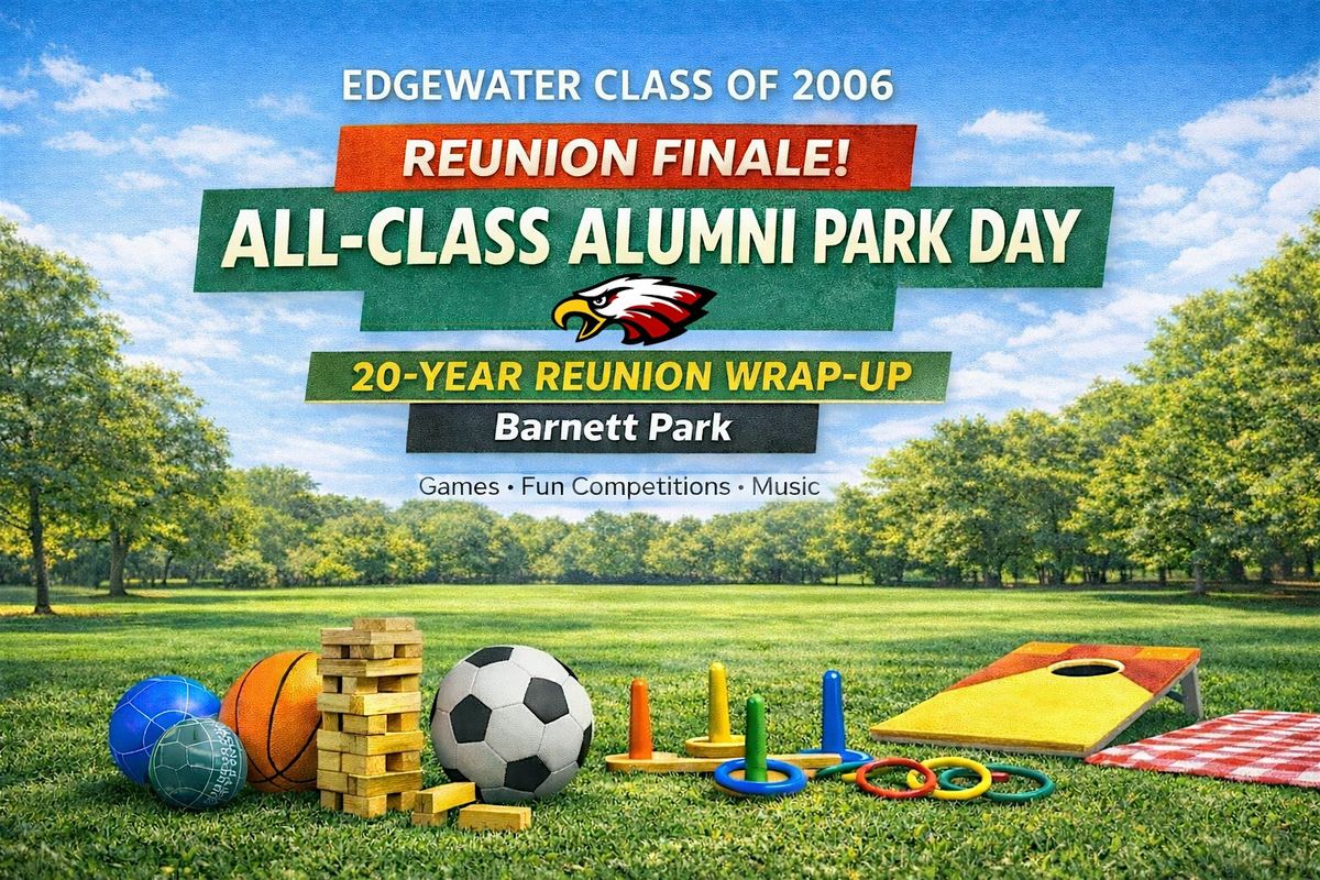 Close out the Edgewater High 20-Year Reunion Weekend (Class of 2006) with one last big outdoor link-up. This park day is our finale—a chance to relax, laugh, and reconnect not only with our classmates, but with EHS alumni from all years who want to come celebrate and fellowship with the Edgewater family.