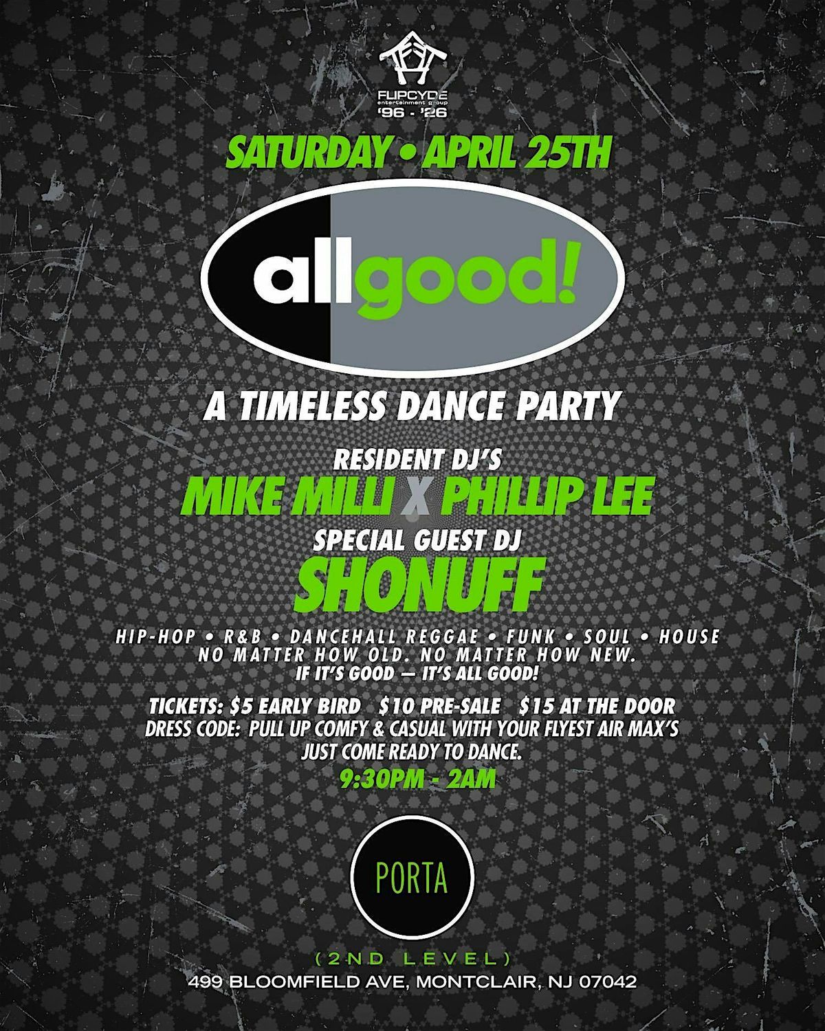 Another timeless Dance Party with resident DJs Mike Milli + Phillip Lee and Special Guest Shonuff on Saturday April 25th at Porta-MonclairAbout this Event