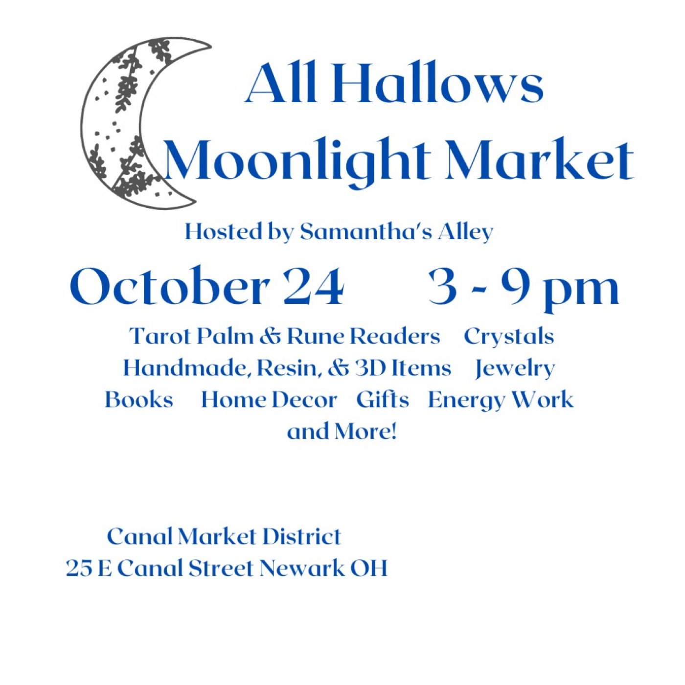 Outdoor metaphysical faire in the busy downtown Newark Ohio Canal Market District. Tarot readers Palm reader Runes reader handcrafted art handmade jewelry items Energy workers gift items for everyone on your list - including you! Home decor home cottage foods including baked goods home made jams and jellies beautiful turned wood bowls and the list goes on. We are within walking distance of downtown restaurants and bars and next door to the Licking County Haunted "Jail of Terror" attraction.