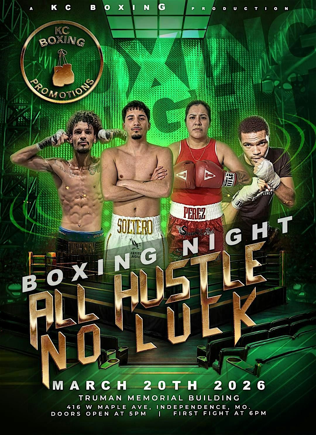 All Hustle No Luck delivers a night built on grit, discipline, and real competition. This event brings together driven athletes who are focused on growth, consistency, and earning every opportunity the hard way. Each matchup is designed to test skill, conditioning, and mental toughness—no easy fights, no favors given.