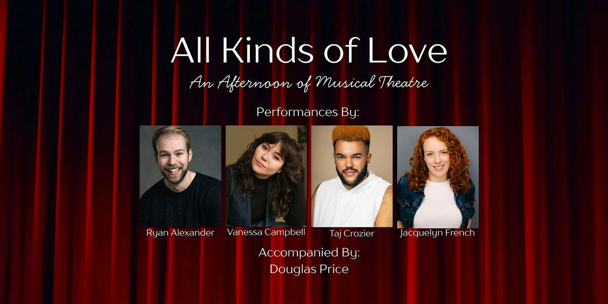 Join us in person for an unforgettable afternoon of singing and storytelling. This cabaret brings together sweeping ballads, show-stopping tunes, and plenty of fun vibes that'll warm your heart. Whether you're a theatre buff or just in the mood for some great music, come experience All Kinds of Love through the magic of musical theatre!
