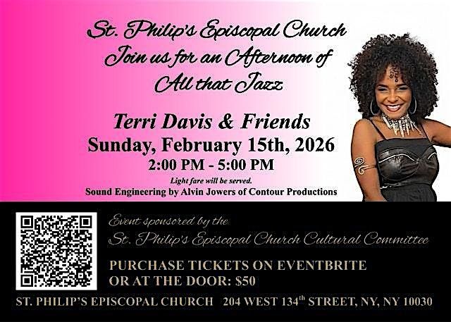 Get ready for a afternoon filled with smooth grooves and soulful tunes at All That Jazz. Join Terri Davis and her amazing friends live and in person for an unforgettable experience. Whether you're a hardcore jazz lover or just a music enthusiast, this gig’s got you covered. Bring your friends, your smile, and your love for good music — "we're going to have a good time!"