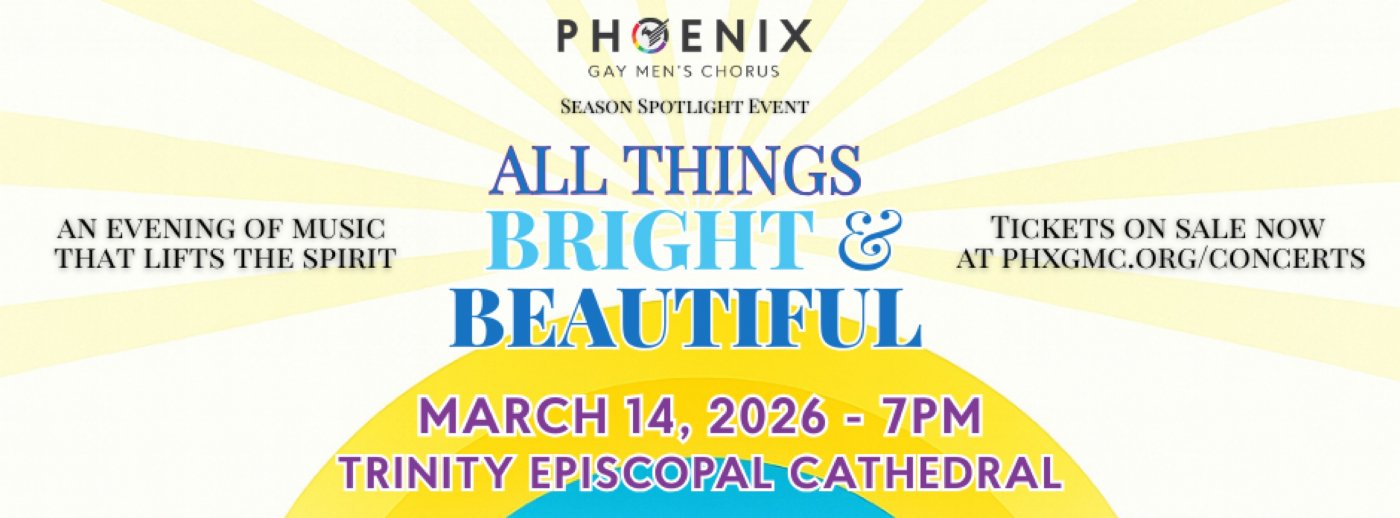 All Things Bright & Beautiful is a celebration of choral artistry and the human voice presented by Phoenix Gay Men's Chorus. This special evening brings together rich harmonies, timeless songs, and stunning arrangements that showcase the power, beauty, and emotional depth of vocal music. Audiences can expect an unforgettable concert experience that honors diversity, connection, and the joy of collective music-making — creating moments that are as uplifting and brilliant as the title suggests.