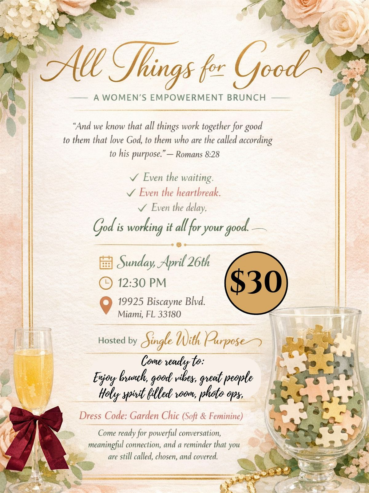To celebrate Womens History Month 2026 - Single With Purpose (@Singlewithpurpose) wants to honor YOU and gracefully remind you of WHO you are in Christ! We want to bring together an intimate space of dynamic woomen to network, fellowship, pray, worship enjoy brunch, work on our crafts together, have picture opportunities, and be sent home with some goodies!