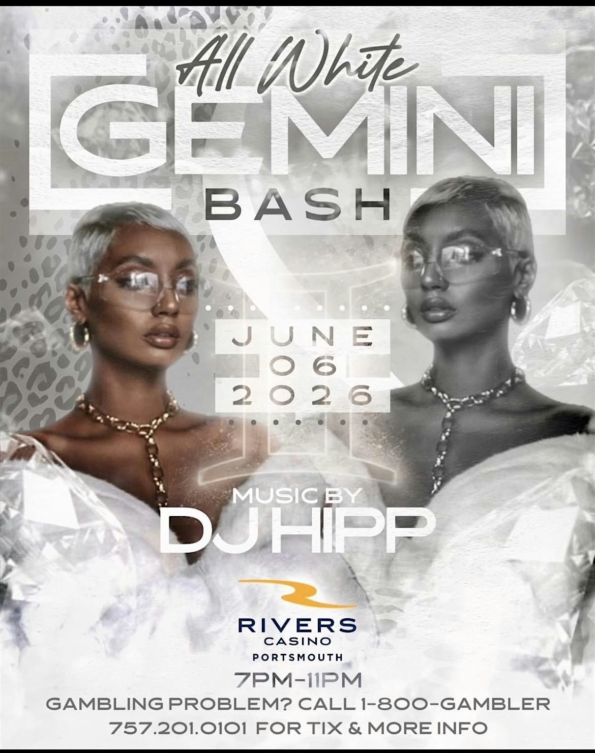 Get ready for an epic night at Rivers Casino Portsmouth! Join us on June 6, 2026 at 7:00 PM (Eastern Time) for the ultimate ALL WHITE “Gemini” BASH. Dress to impress in all white and come vibe with great music, cool people, and unforgettable moments. Don’t miss out on this fun, in-person event where the party never stops!