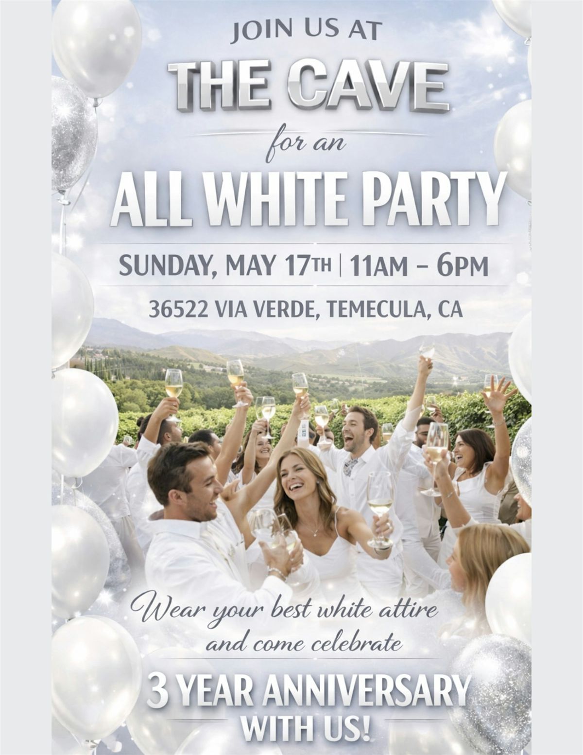 Wear your best white attire and come celebrate! 3 year Anniversary with us!
