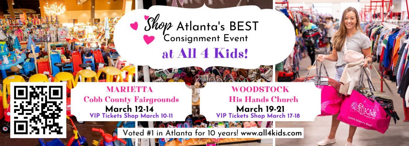 All 4 Kids is Atlanta's BEST Children's Consignment Event. We are a small, family-owned business that has been making a big impact for over 30 years. Sell everything your children have out-grown such as Clothing