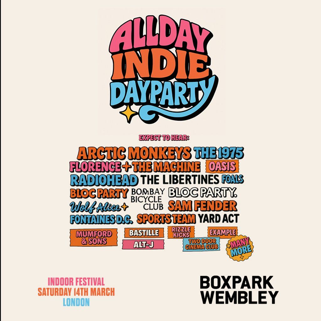 AllDay Indie Indoor Festival - Boxpark WembleyA massive allday throwback party celebrating the sound of your youth.