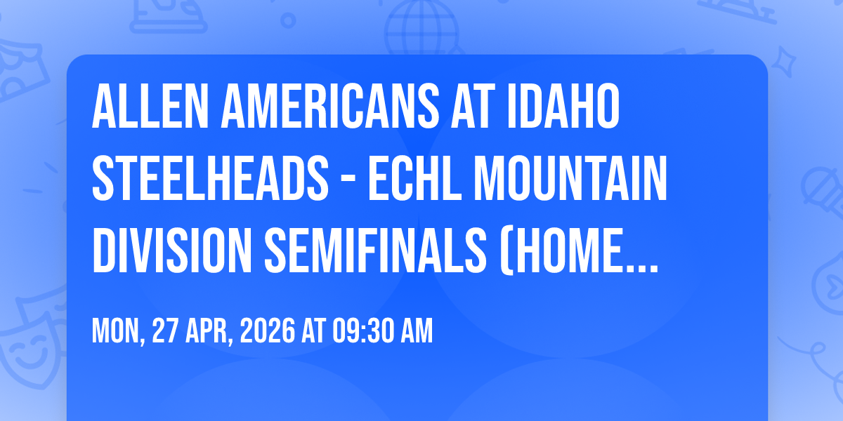 π Location: 43.6146, -116.204π Step into a world of wonder at Allen Americans at Idaho Steelheads - ECHL Mountain Division Semifinals (Home Game 3), where extraordinary moments await! ποΈ Located at Idaho Central Arena in dynamic Boise, ID, this event will become the talk of the town. π Join us on April 27th, 2026 at 09:30 AM for a celebration that defies the ordinary. β¨ This curated experience brings together the best of entertainment, culture, and community spirit. Every detail has been thoughtfully planned to ensure an unforgettable experience for all our guests. π― Take advantage of this opportunity to be part of something special. π Early registration is recommended as space is limited!