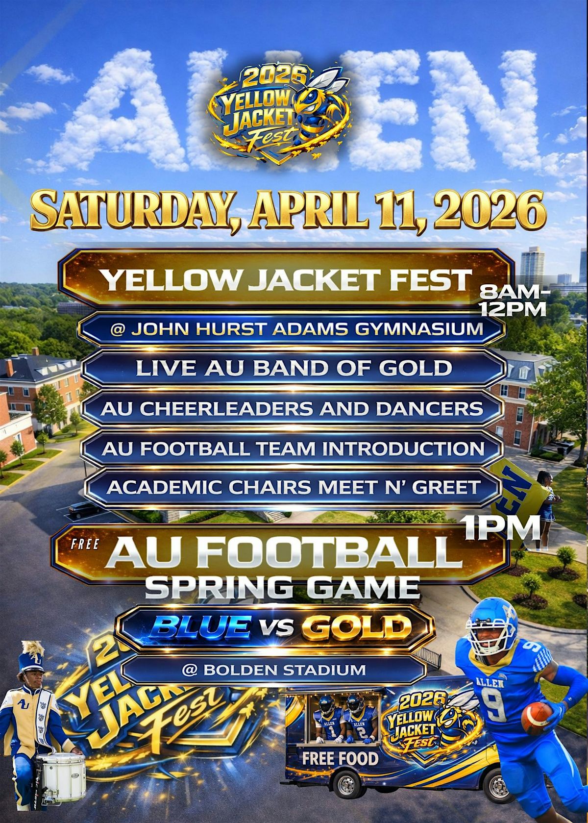 Yellow Jacket Fest is more than just an event—it’s an opportunity for students to connect with the Allen community, explore academic programs, and experience the vibrant spirit of AU. We look forward to welcoming everyone to campus for a day full of music, fellowship, school pride, and Yellowjacket spirit. Catch this Vibe at "The Hive" !