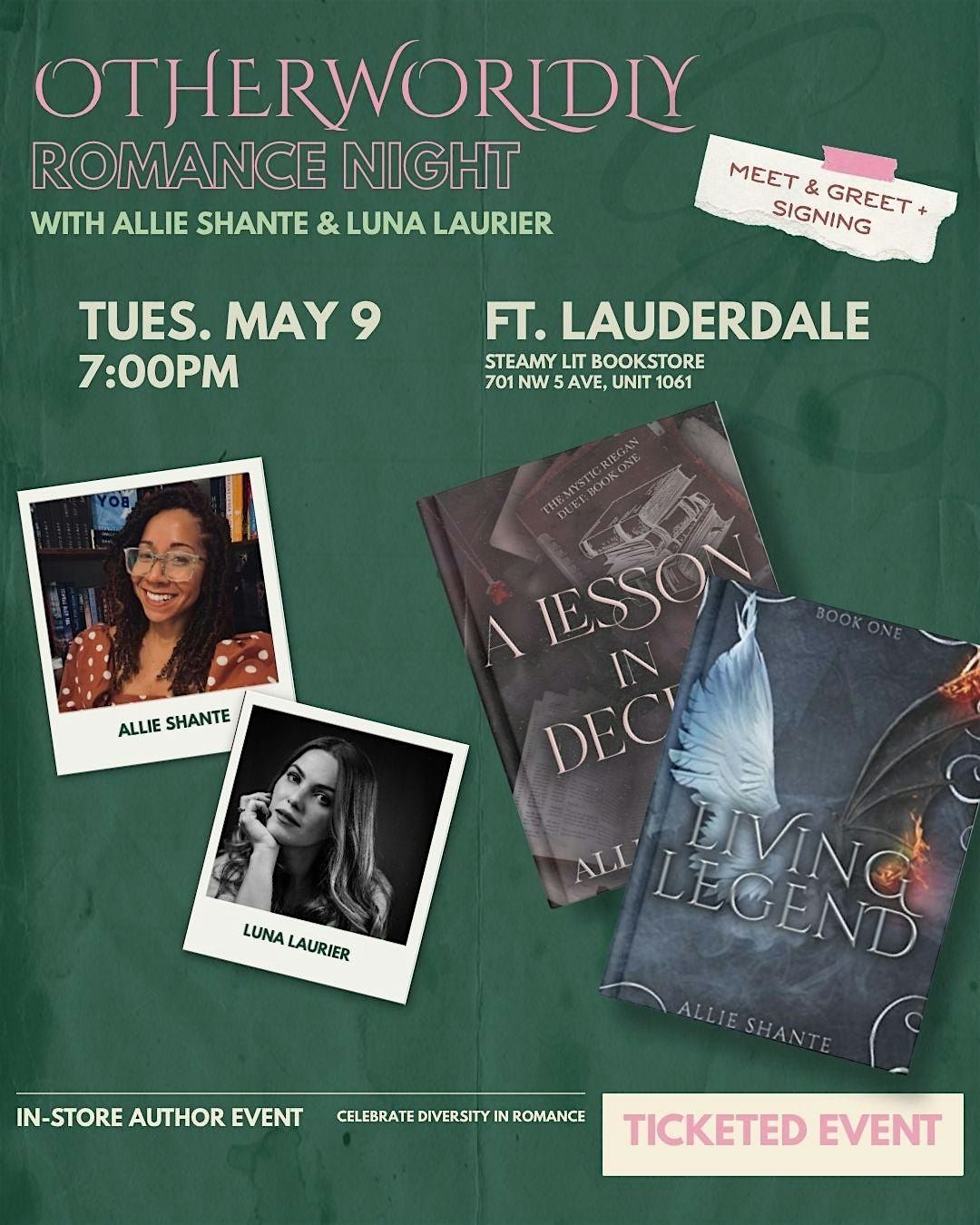 Join us for an otherworldly romance night getting to know author Allie Shante in conversation with Luna Laurier. Get to know them, learn about their work, and fall in love with your next Romantasy. The conversation will be followed by an author meet & greet, and signing.