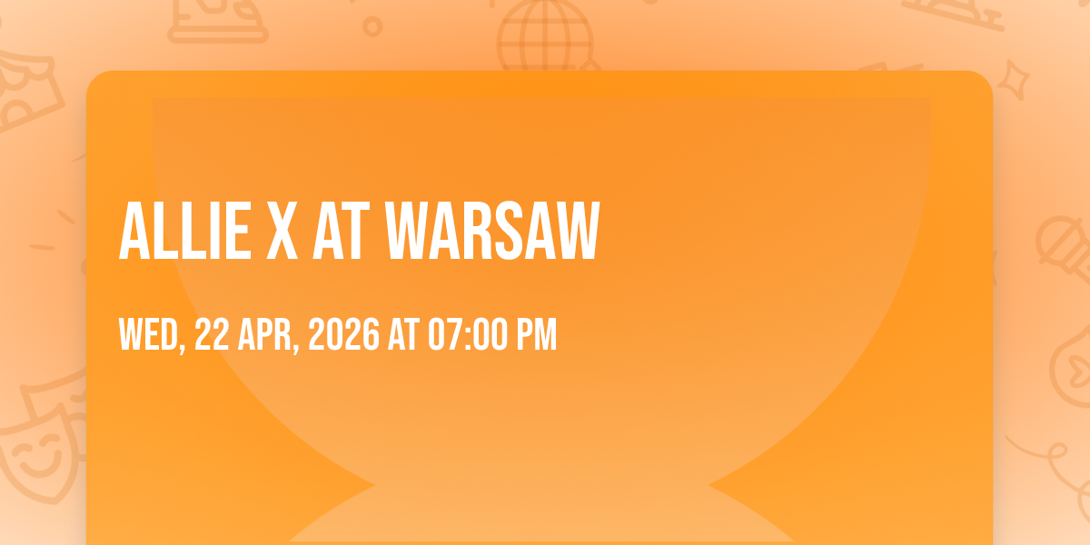 🎉 Welcome to Allie X at Warsaw, where the impossible becomes possible and dreams take flight! 🏛️ Join us at Warsaw in the heart of Brooklyn, NY for an event that will redefine your expectations. 📅 On April 22nd, 2026 at 07:00 PM, witness the transformation of space and time into something truly magical. ✨ It's a curated experience combining the best of innovation, entertainment, and community spirit, creating moments that will be remembered for years to come. Whether you're a first-time visitor or a seasoned enthusiast, prepare to be amazed. 🎊 Book now to ensure your place in this unforgettable experience!