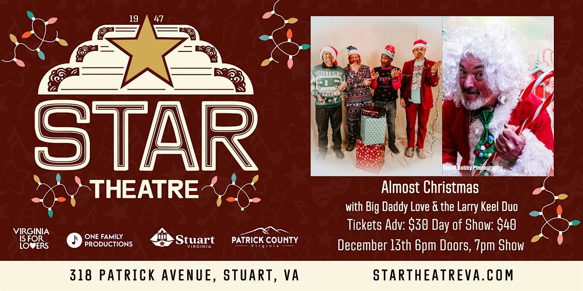 Join us Saturday, December 13 — doors open at 6 PM, show starts at 7 PM — for performances by Big Daddy Love and the Larry Keel Duo, bringing you a mix of roots, rock, and bluegrass energy to kick off the season right.