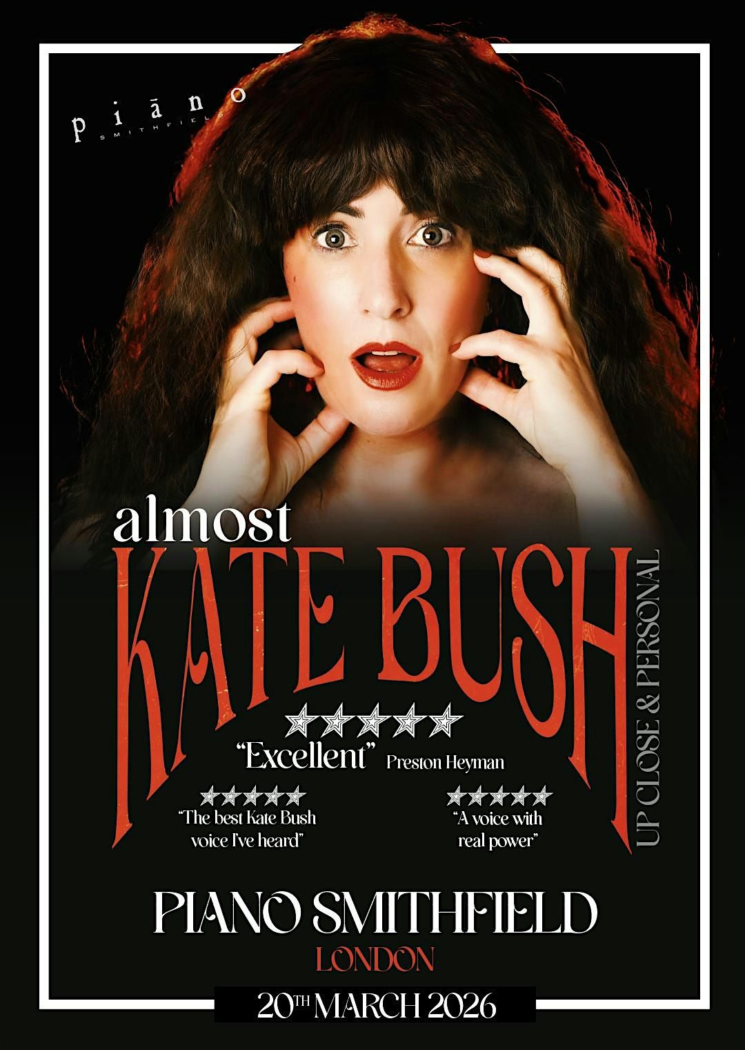 Welcome to the wonderful world of Almost Kate Bush, a captivating tribute show unlike any other. Allow yourself to be transported back to ’78 when Kate released Wuthering Heights and the musical landscape changed forever. This show will take you on a journey from The Kick Inside, through Lionheart & Never for Ever, focussing on her earlier work and the songs from her ’79 Tour of Life. Of course, you expect a lot of her greatest hits too! A stunning piano & vocal performance with a few surprises along the way which will win the hearts of life-long fans and those who have only recently discovered her magical talent.