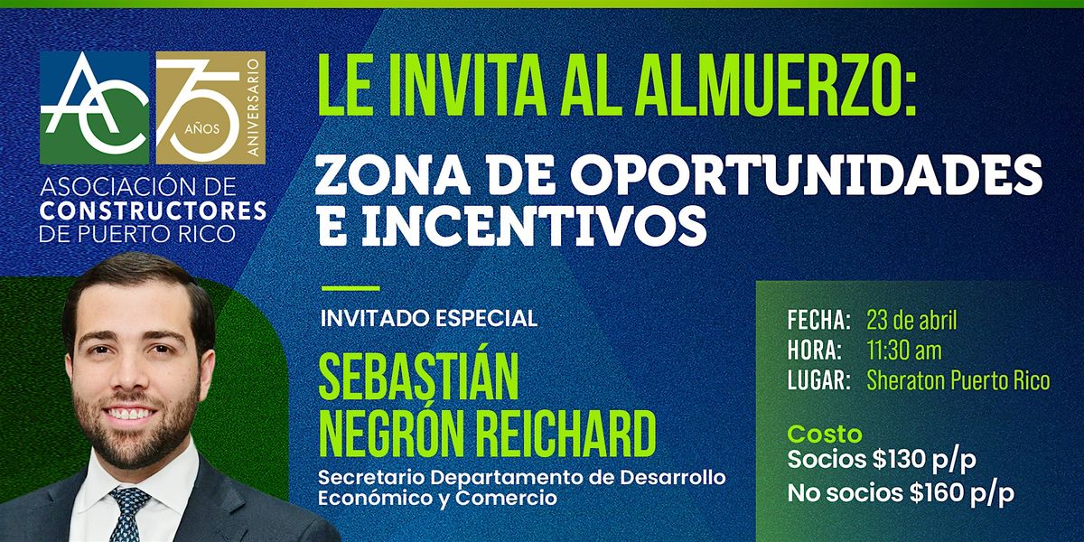 La ACPR te invita a este Almuerzo con Sebastián Negrón, Secretario del DDEC y quien abordará el tema de Zonas de Oportunidades e Incentivos.About this Event